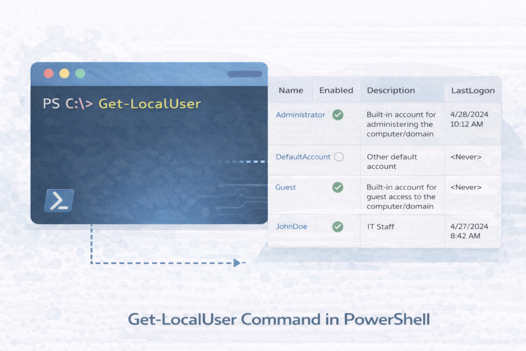 دستور Get-LocalUser یکی از مهمترین دستورات پایهای PowerShell برای مشاهدهی کاربران محلی است.