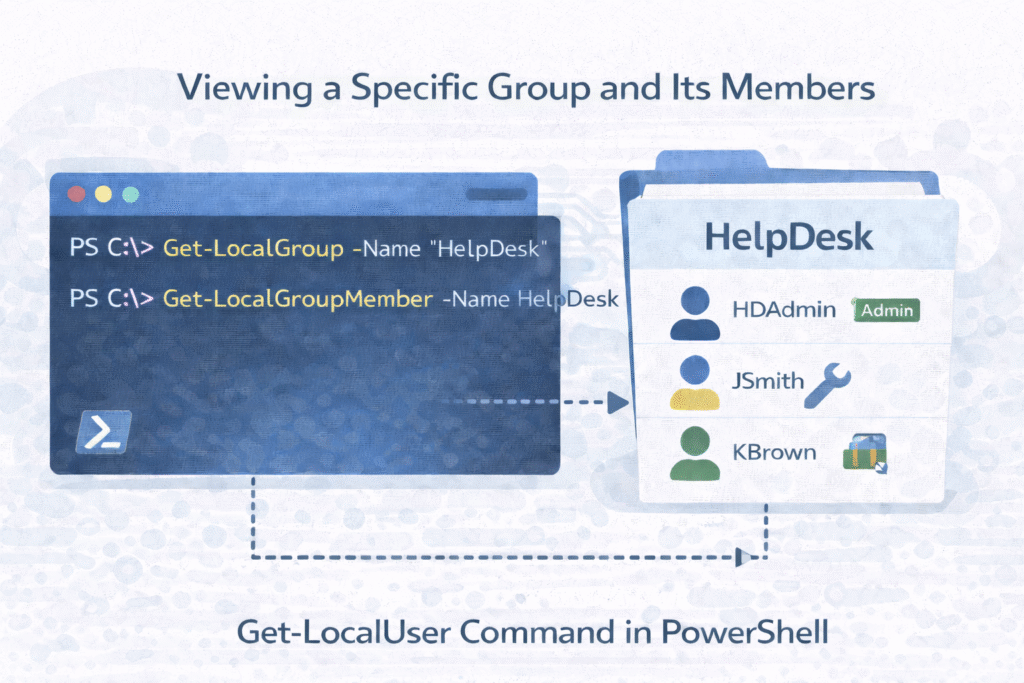 PowerShell با ارائهی دستوراتی مانند Get-LocalUser و Get-LocalGroup، ابزار دقیقی برای مشاهده، فیلتر، و بررسی کاربران و گروه ها در اختیار شما قرار میدهد. این روش به ویژه برای مدیرانی که میخواهند دهها سیستم را همزمان مدیریت کنند، بسیار کارآمد است.